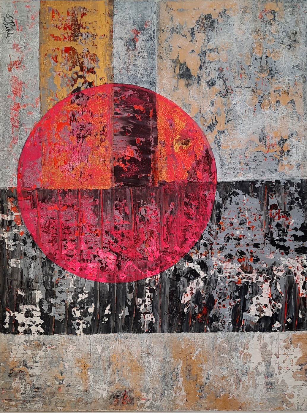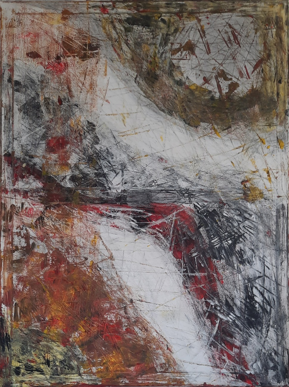 Ich arbeite hauptsächlich mit Acrylfarben, vorwiegend abstrakt.
